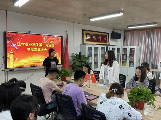 2021年5月31日,法学院法学专业学生第一党支部在西湖校区景行楼812召开支部党员大会,开展2021年第二次党员发展工作。大会由支部书记项亚萍主持,支部全体党员和本次发展对象参加。