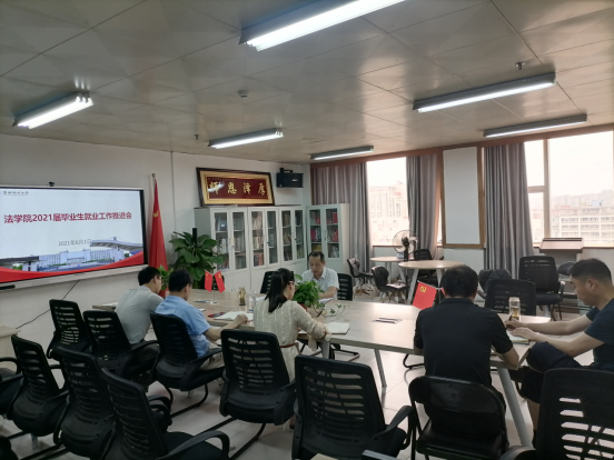 为深入开展“我为师生办实事”实践活动,引导毕业生积极就业,提高就业工作服务质量,推动学生成长成才,2021年6月1日,法学院在景行楼812办公室召开2021届毕业生就业工作推进会。会议由法学院党委书记钱守云主持,学院党政领导班子、党委委员、教研室主任、毕业班辅导员等参加。