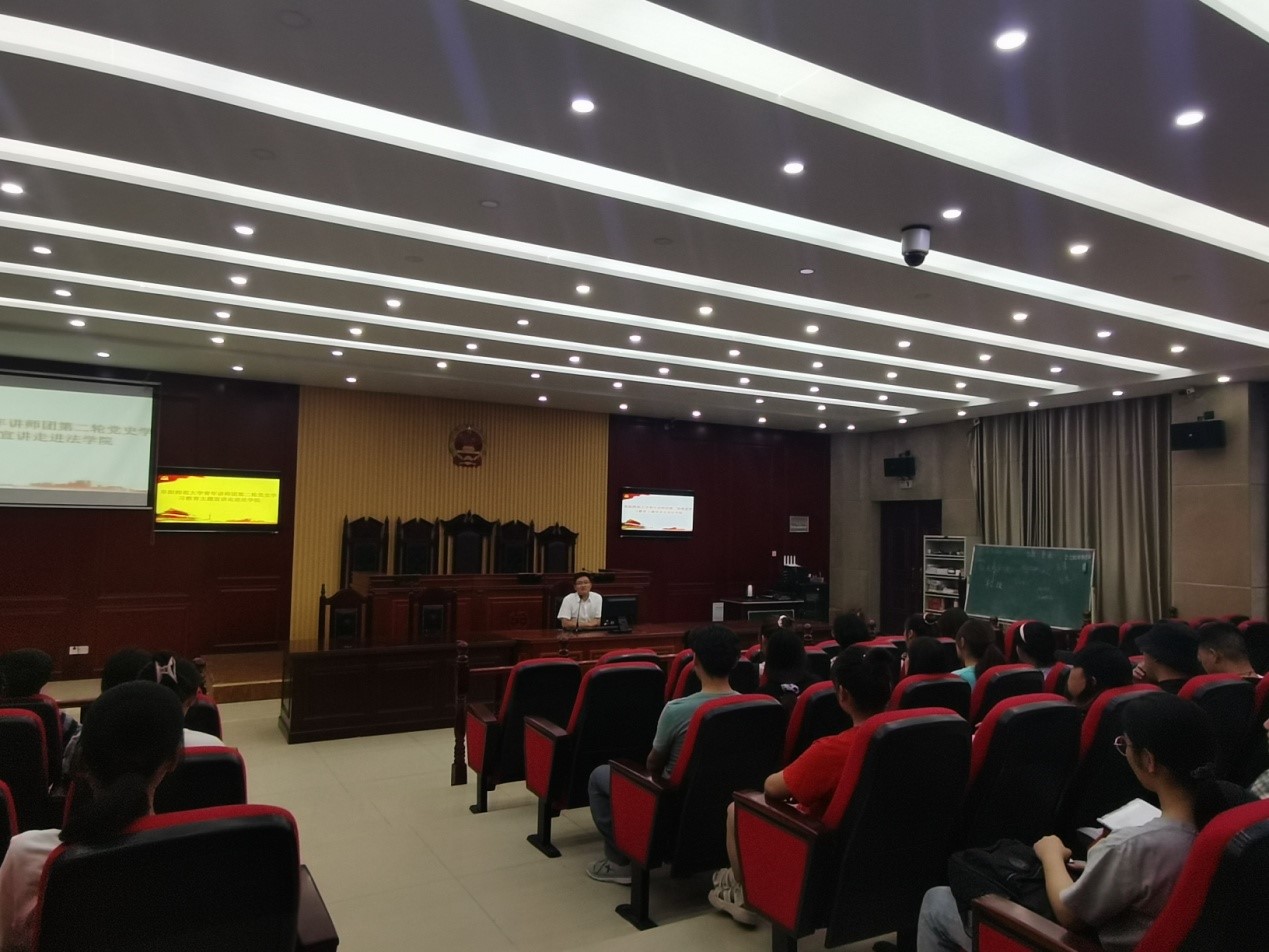为贯彻落实习近平总书记关于抓好青少年党史学习教育,让红色基因、革命薪火代代传承的要求,进一步夯实青年大学生马克思主义和共产主义的信仰根基,6月9日,校青年讲师团成员、法学院团学负责人李阿康在西湖校区南平模拟法庭开展党史学习教育主题宣讲,法学院部分学生团员、党员参加了此次宣讲会。