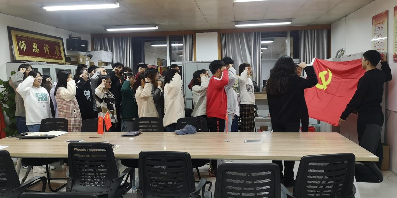 随后,支部全体党员同志举起右手,面向党旗庄严宣誓。