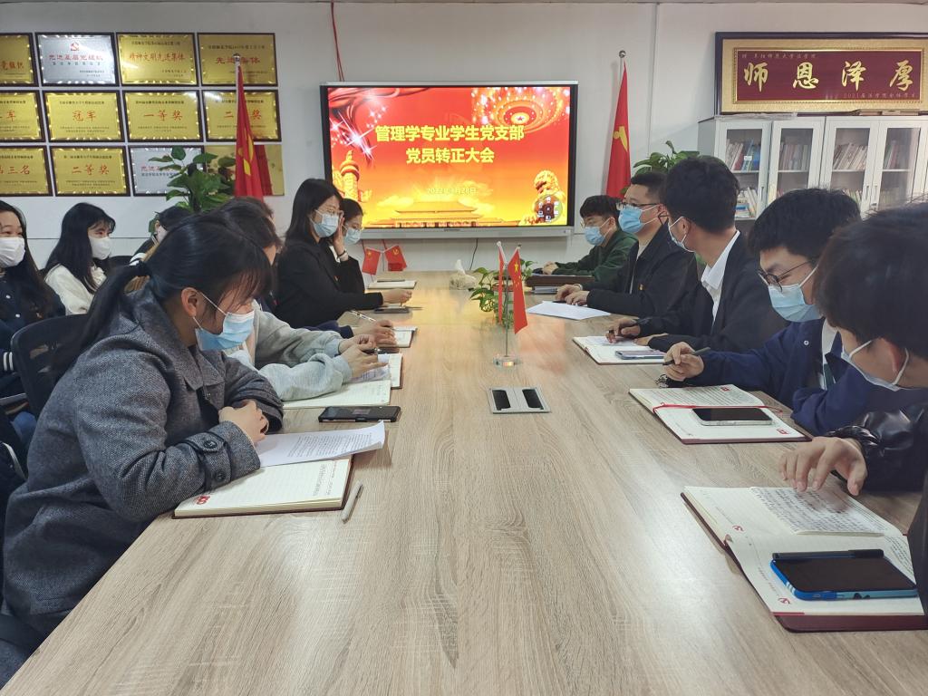 2022年3月28日,法学院管理学专业学生党支部在西湖校区景行楼812召开支部党员大会,开展2022年上半年党员转正工作。支部书记李阿康主持会议,全体党员同志参加。