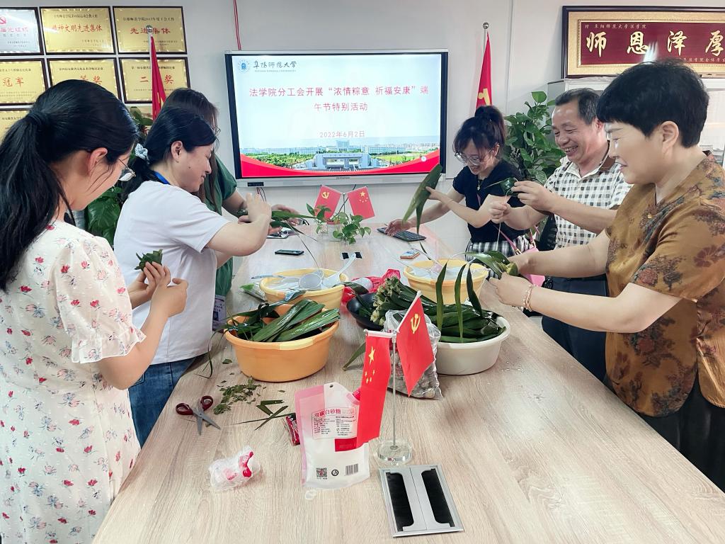端午近,粽香飘。为丰富教职工文化生活,厚植家国情怀,继承和传承中华传统文化。6月2日上午,法学院工会在景行楼812开展“浓情粽意 祈福安康”教职工端午节包粽子活动,学院党委书记钱守云、院长余为青、党委副书记李阳、工会主席万筱萍出席本次活动,学院部分教职工参加了本次活动。