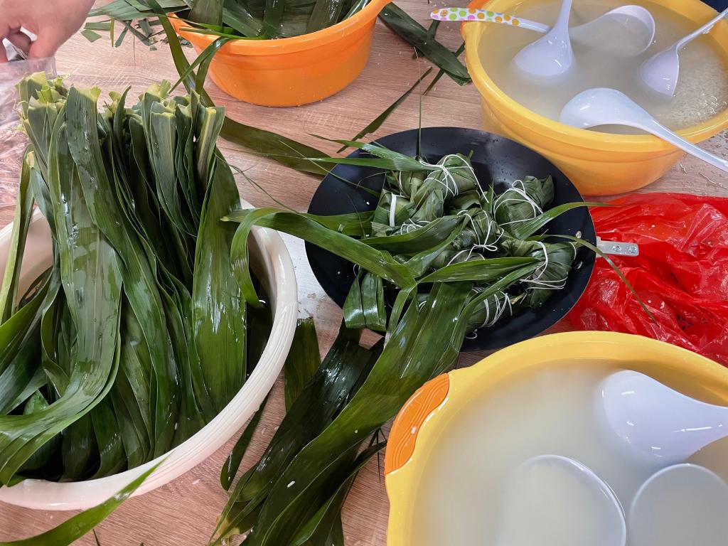 活动现场,大家分组用准备好的糯米、粽叶、红枣等食材,大展身手,相互学习包粽子的方法,欢声笑语随着阵阵粽香飘荡。大家边包粽子边交流端午节的传统习俗,了解端午节的知识,体验包粽子的乐趣。