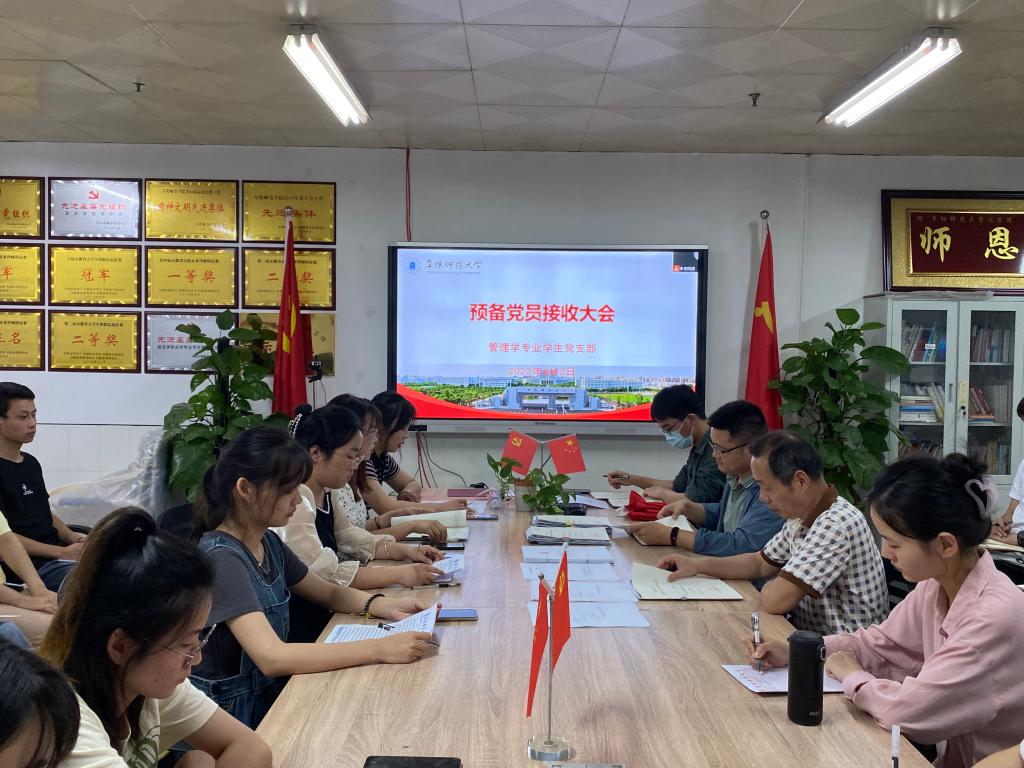 6月2日晚,法学院管理学专业学生党支部在景行楼812召开2022年上半年预备党员接收大会,学院党委书记钱守云出席本次会议,发展对象、党支部全体党员参加会议,会议由党支部书记李阿康主持。