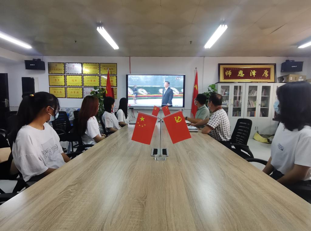 观看直播的过程中,师生们庄严肃穆,同现场参加仪式的各界代表一起瞻仰了人民英雄纪念碑,深切缅怀人民英雄,向为中国人民解放事业和共和国建设事业英勇献身的烈士们致敬!通过观看直播,使师生代表接受了一场深刻的爱国主义教育和精神洗礼。