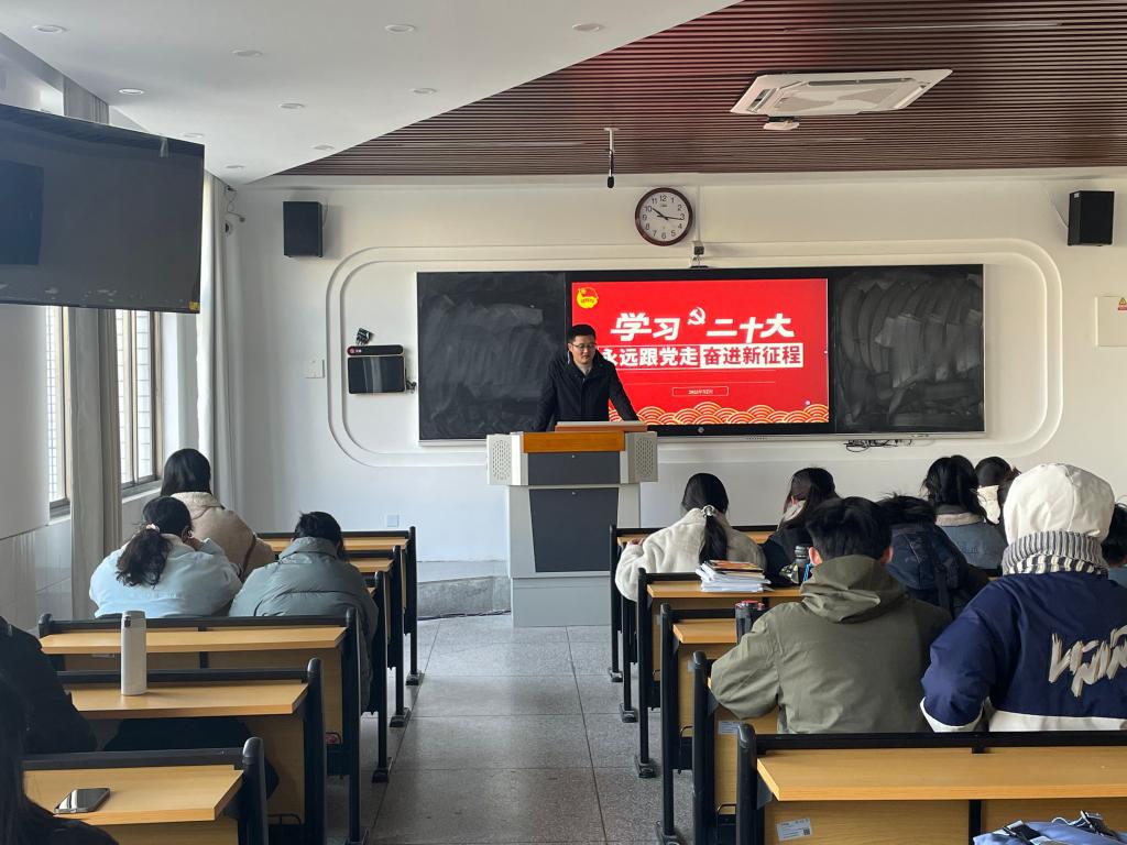 为深入学习宣传贯彻党的二十大精神,引导青年学生进一步坚定理想信念,传承红色基因,弘扬红色精神。12月2日,校青年讲师团成员、法学院团委负责人李阿康走进班级宣讲党的二十大精神。