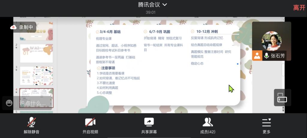 4月24日,党支部邀请2019级法学专业3班张石芳同学开展考研经验交流会,分别从同学们关注度备考细节:时间安排、择校、心理调试三方面对考研备考进行详细介绍。