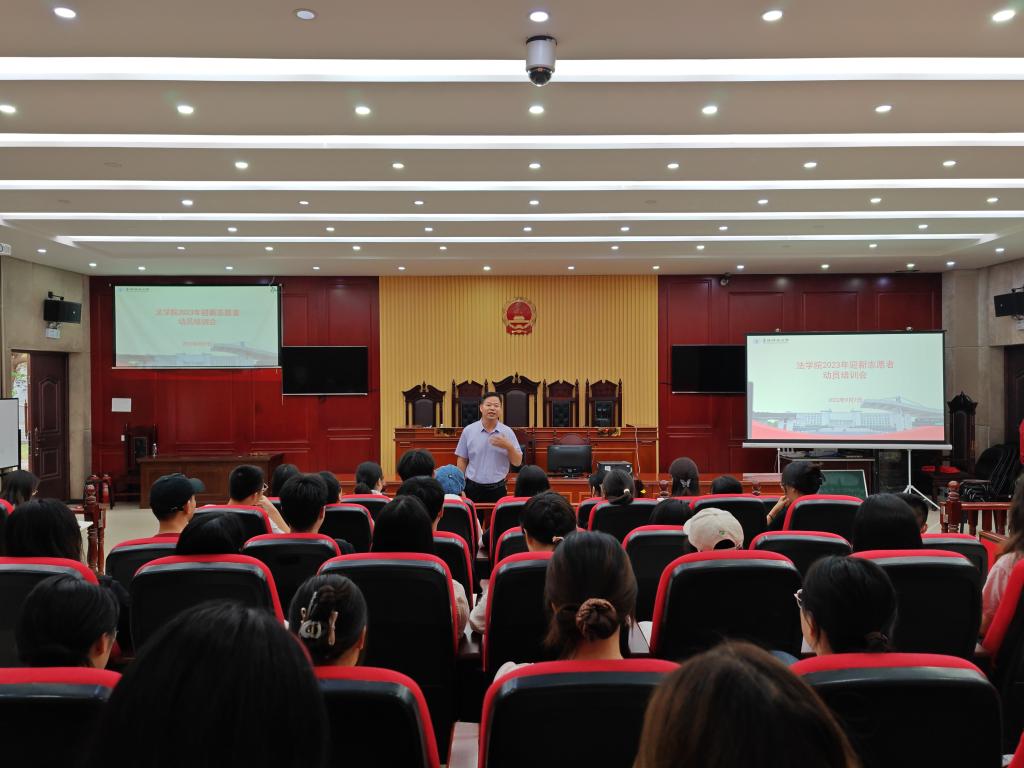 为提高迎新志愿者的服务意识、服务质量和服务水平,增强迎新志愿者队伍服务专业性,确保我院2023年迎新志愿服务工作有序高效的完成。9月6日至7日,法学院分别在清河校区、西湖校区召开2023年迎新志愿者动员培训会,法学院党委书记马健、团委负责人李阿康、2022级辅导员吴方方以及全体迎新志愿者参与了本次动员培训会。