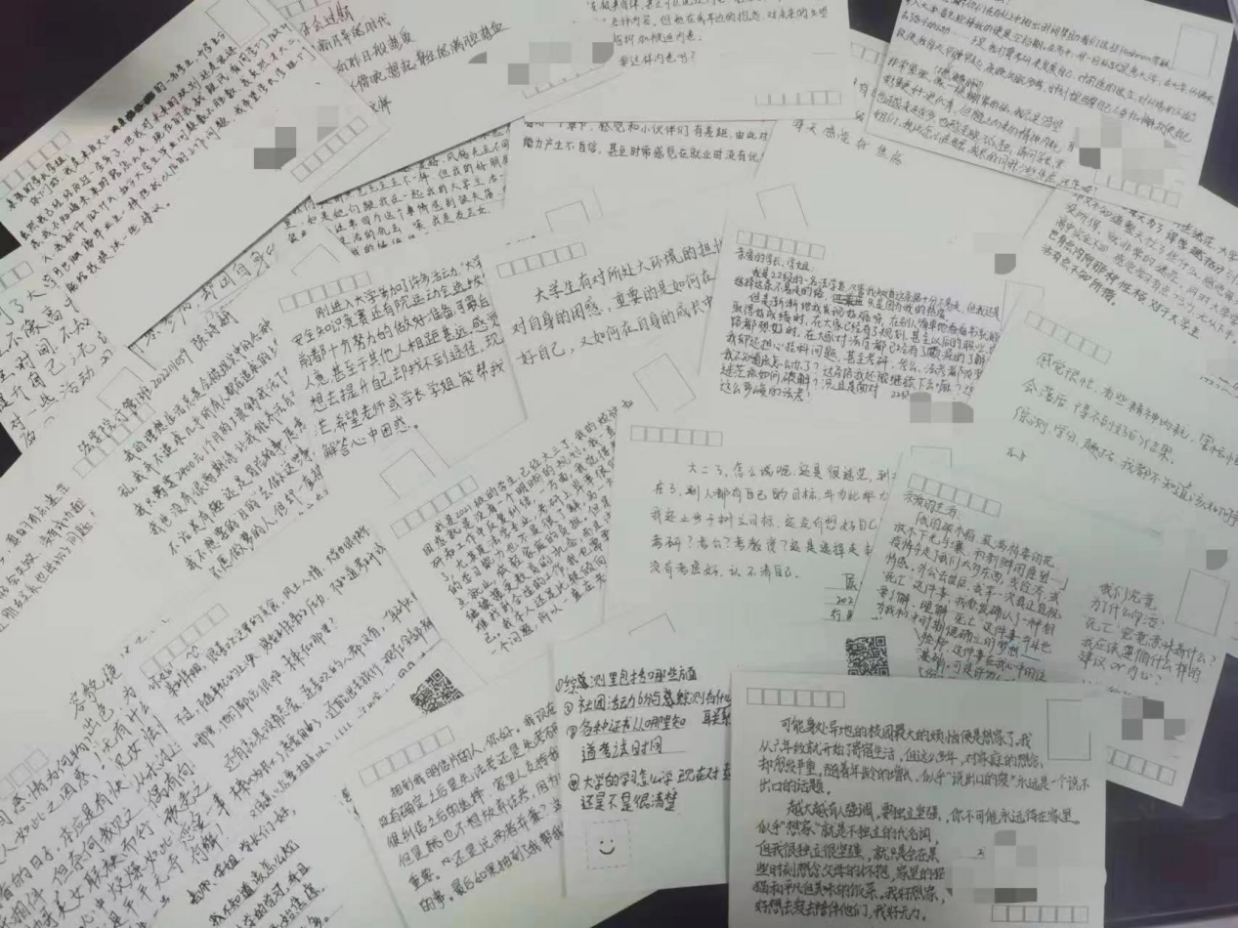 倾诉烦恼,解答有心。10月16日至10月20日在西湖校区景行楼208开展“以心相印,我心有事,浅述与TA”心灵树洞活动,目的是帮助同学们解决心中的烦恼,提供一个倾诉和寻求建议的平台。本次活动由“叙说烦恼”和“化解烦恼”两部分构成。倾诉者把烦恼写在明信片上,将自己的烦恼转化成文字。解答者代入倾诉者的角度,用共情和温暖告诉有烦恼的同学解决烦恼的方法。通过此次活动,化解了同学们心中的烦恼,促进心理健康,提高心理抗压能力。