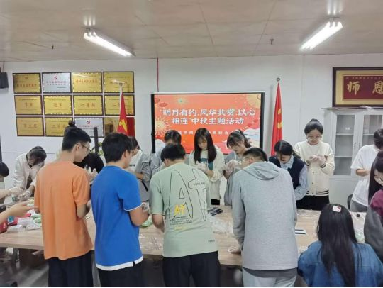 明月做伴,寄情有心。9月29号下午,法学院心理委员联合会组织学院未归家同学在景行楼812教室开展“明月有约,以心相连”中秋节DIY主题活动,活动以DIY手工月饼,寄相思于笔墨为主线有序开展。大家以做月饼和写明信片为方式,将思念包裹于月饼中,将真情注满在明信片上,将牵挂的心连接起来,让同学们缓解思乡之情,营造温馨氛围。