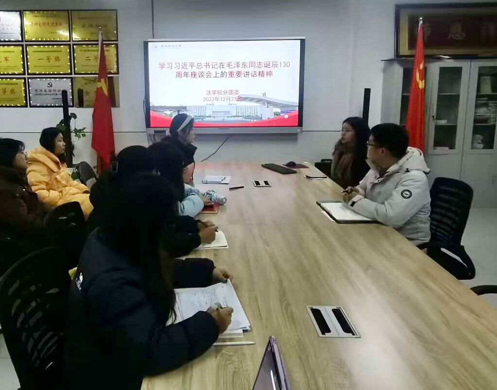 为纪念毛泽东同志诞辰130周年,学习贯彻习近平总书记在纪念毛泽东同志诞辰130周年座谈会上的重要讲话精神。12月27日,法学院团委组织召开学习贯彻习近平总书记在纪念毛泽东同志诞辰130周年座谈会上的重要讲话精神,本次会议由院团委负责人李阿康主持,全体团支部书记参会。