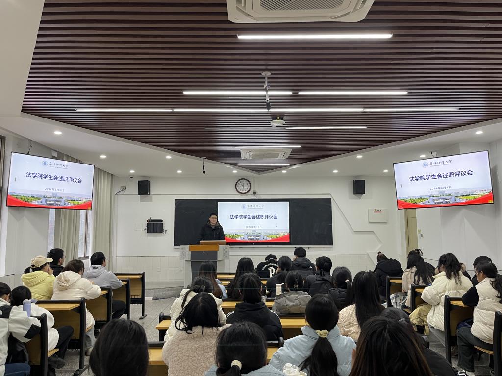 为深入贯彻落实习近平总书记关于青年工作的重要思想,及时总结我院学生会各项工作,切实提升院学生会学生骨干的任职履职能力,3月7日,法学院团委于西湖校区景行楼212教室开展了2023-2024学年度第一学期学生会述职评议会,法学院团委负责人李阿康、挂职副书记覃业坤、全体学生会成员及部分学生代表参加会议。
