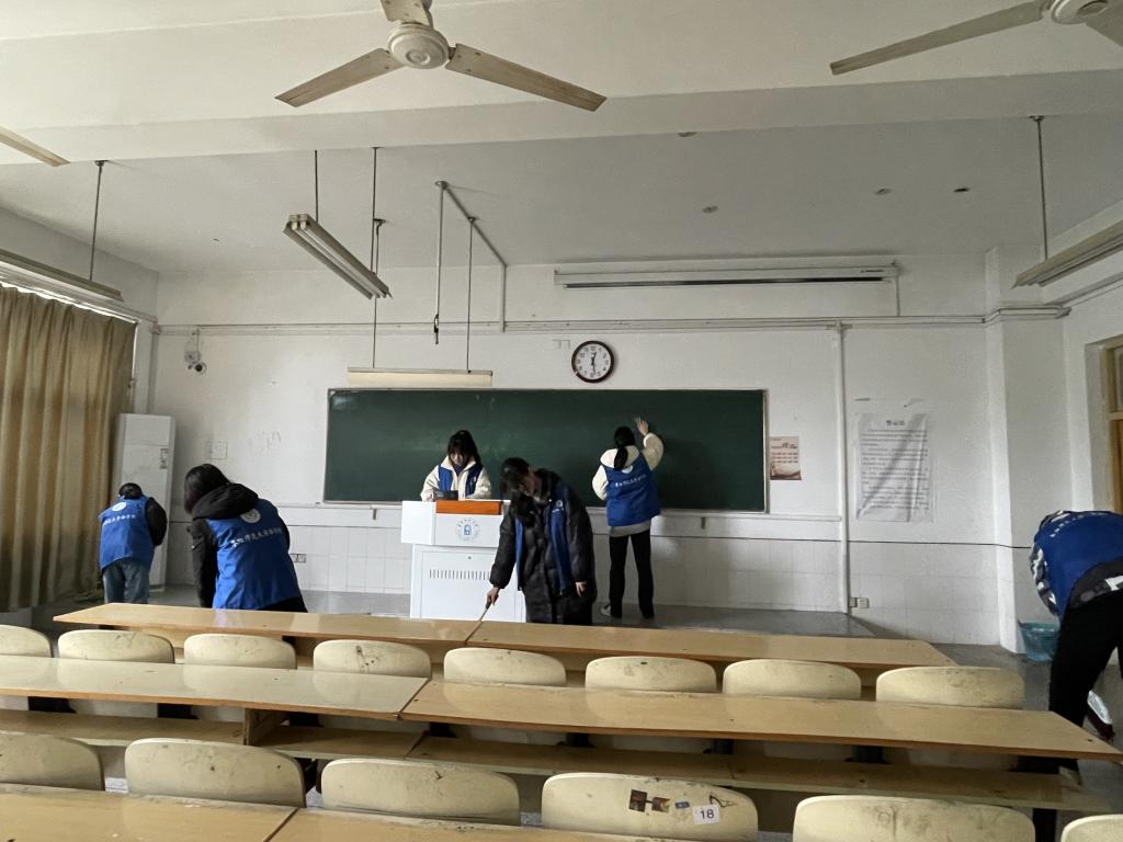 活动现场,志愿者们分工明确,积极投入到清扫工作中。志愿者们对教学主楼进行了打扫,整洁了教室桌椅、擦净了教室黑板、美化了公共区域,他们忙碌的身影成了教学楼里一道亮丽的风景线。