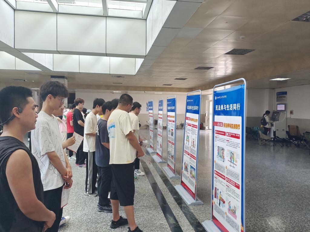 活动现场,志愿者们通过发放《民法典》宣传手册、引导学生观看宣传展板等方式,对《民法典》基本原则、总则、物权篇、人格权篇等内容进行介绍。引导青年学生学会运用法律武器维护自身权益,切实增强同学们对《民法典》的熟知度,提升学法的积极性。