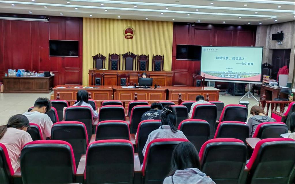 “信守不渝,资助育人”知识竞赛。为提高同学们对国家资助政策的了解程度以及学生个人的征信意识,法学院于6月1日举办资助诚信知识竞赛,随试卷发放的还有诚信承诺书,通过知识竞赛的开展和诚信承诺书的签订,有关资助、诚信的知识深入学生内心,在潜移默化中形成正确的人生观和价值观。