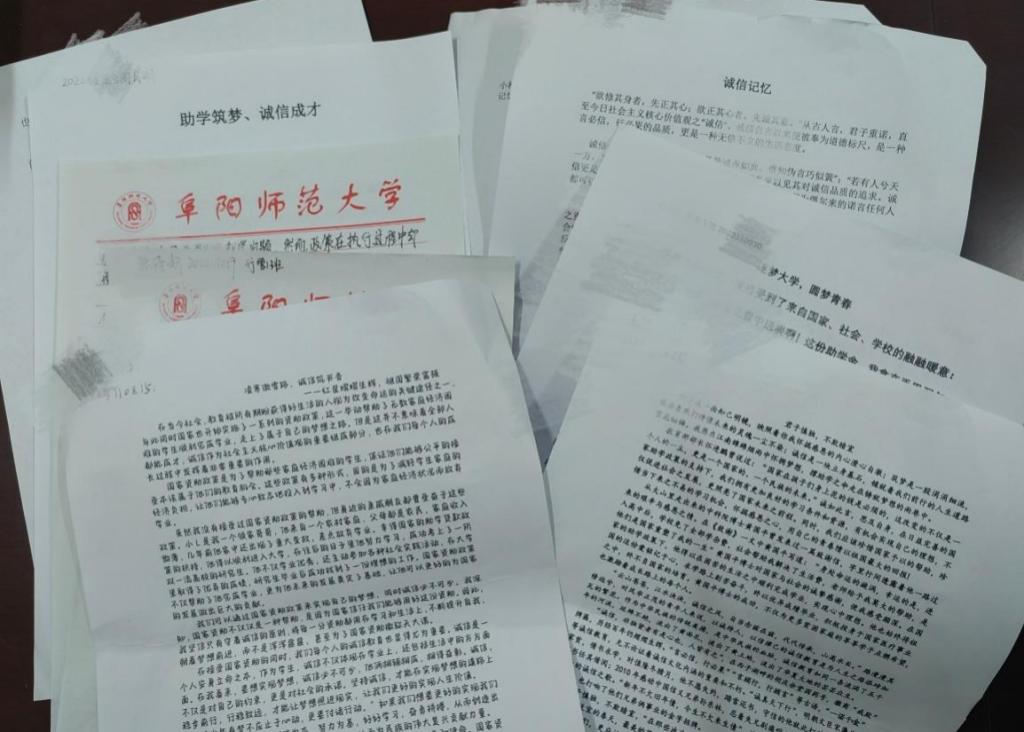 “诚信立身,资助育人”征文比赛。为提高受助学生的诚信意识、感恩意识,法学院于6月上旬举办征文比赛。受助学生字里行间流露出对国家、社会与学校资助工作的感激之情,以励志人物为榜样,鞭策自己不断努力,以提升自身能力回报社会、感恩祖国。