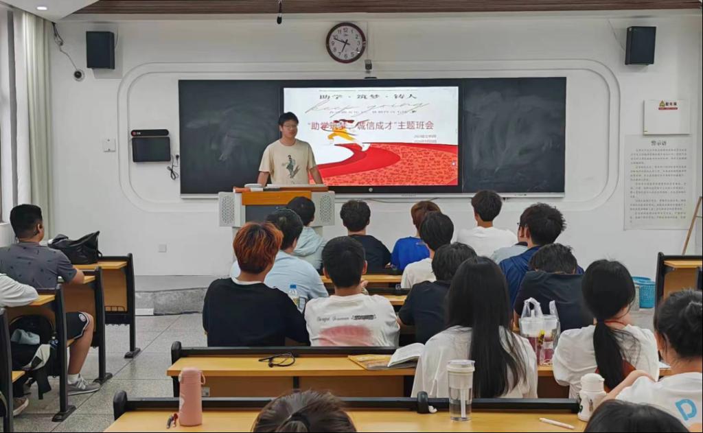 “助学筑梦,诚信成才”主题班会。为全面提升学生文明素养,增强当代大学生诚信意识和责任担当,营造积极向上、文明和谐的校园环境,法学院于5月下旬开展主题班会活动。班会从不同角度阐明了资助诚信教育的含义与重要性,结合受助学生的励志事迹,为班级同学树立诚信励志榜样,加深同学们对资助诚信教育工作的认识,促进资助育人功能发挥实效。