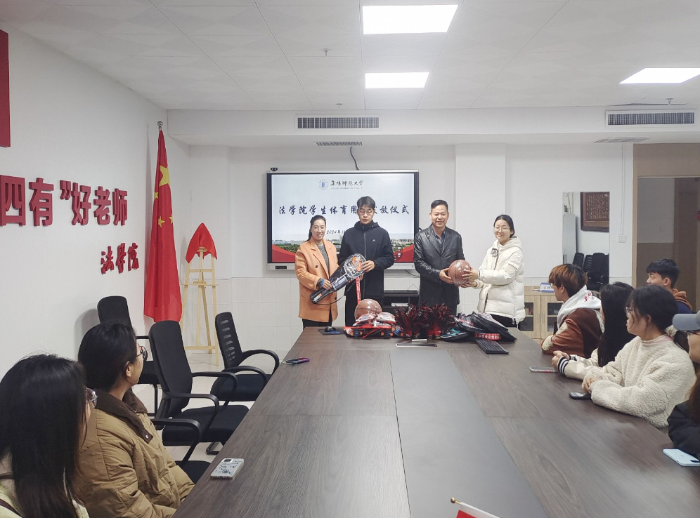为全面推进“五育并举”教育方针,鼓励学生积极参与体育锻炼,增强身体素质,法学院为学生购置了体育用品大礼包,助力阳光体育运动开展。11月21日,法学院在景行楼814举办了体育用品发放仪式。学院党委书记马建、党委副书记李阳、团委负责人李阿康及各班学生代表参加了本次发放仪式。