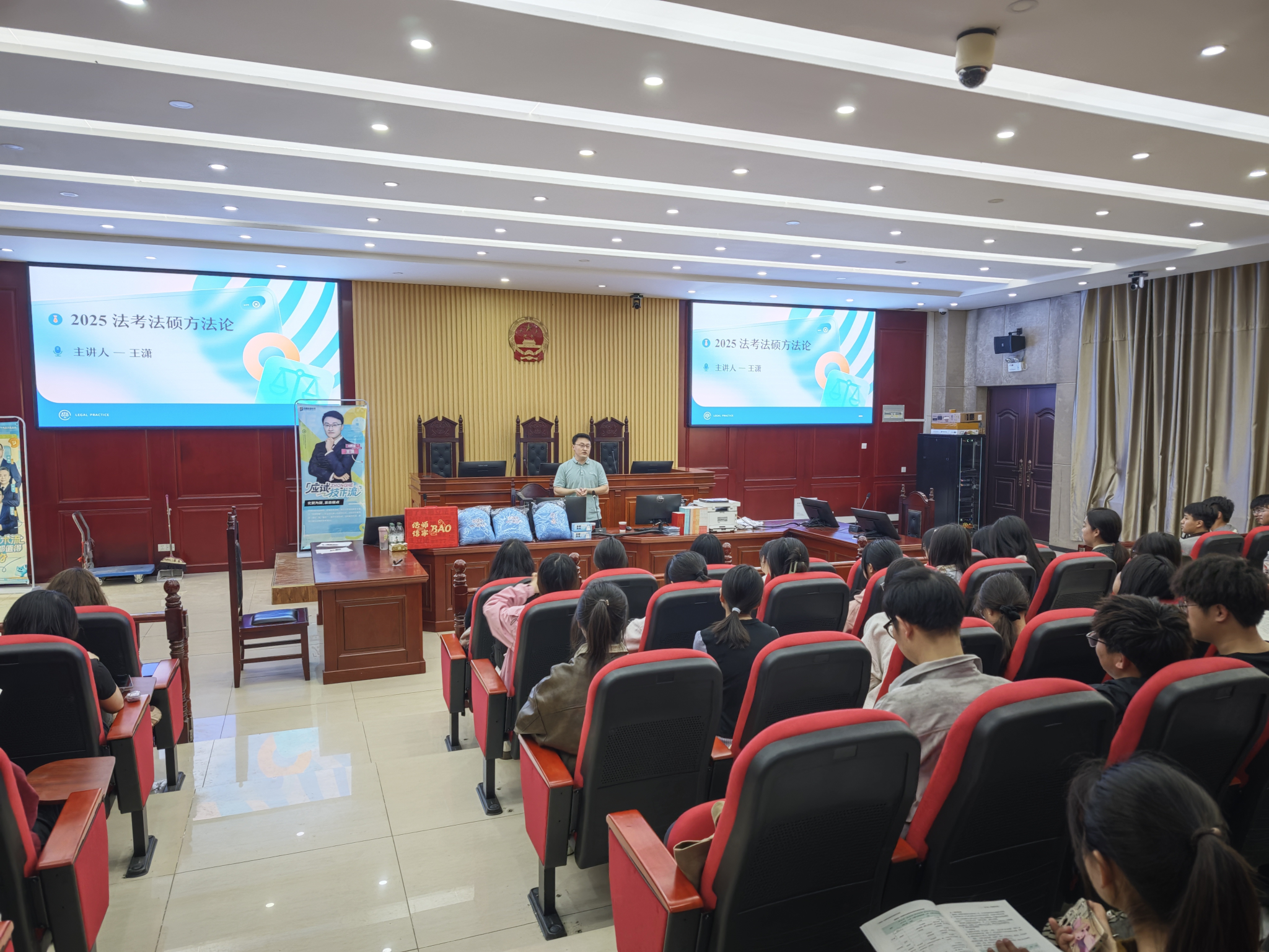 为更好地提高法学院学生法考和考研的积极性,明确学习目标,增强学生学习、考试的信心和决心,指导同学们有目标地做好法考和考研的复习规划。3月26日,法学院在模拟法庭成功举办了2025年法考法硕方法论讲座。众合资深讲师王潇担任主讲,我院法学专业学生代表近150人参加。