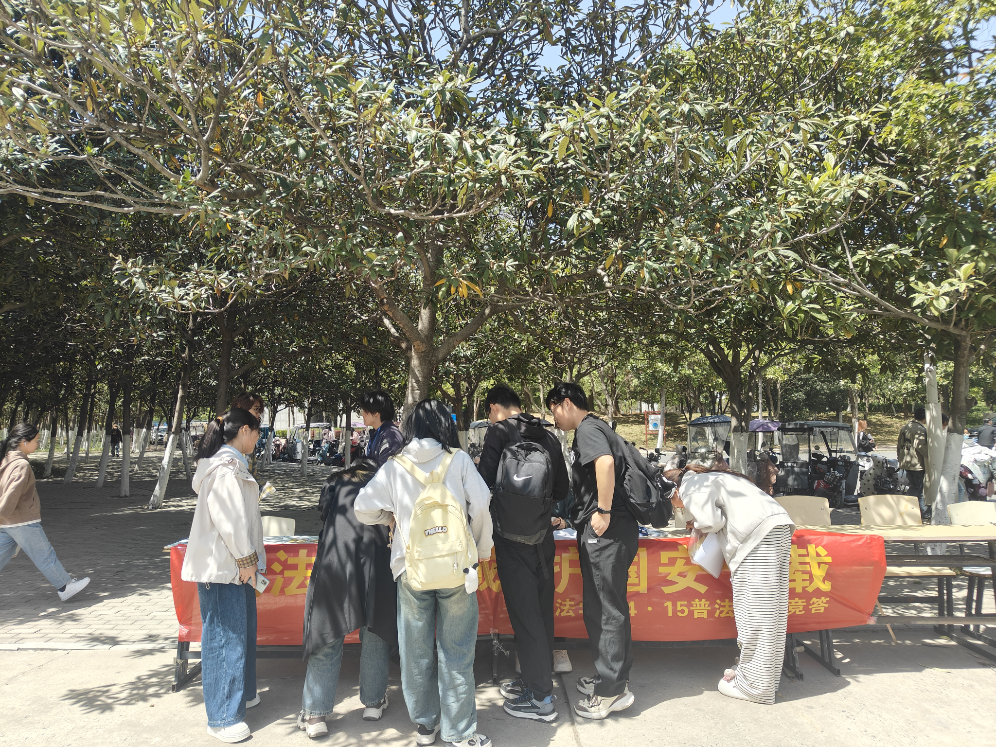 开展全民国家安全教育日普法宣传活动。为深入贯彻落实习近平总书记关于全面加强国家安全教育的重要指示精神,增强学生的国家安全意识和法治意识,营造维护国家安全的浓厚法治氛围。近日,法学院在西湖校区一区食堂开展了全民国家安全教育日普法宣传活动。