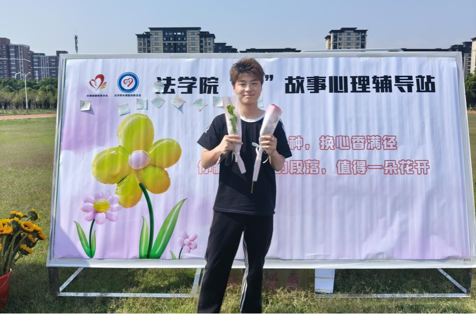 “予我爱我:心语花开--故事换花”活动。5月25日,法学院“心故事”心理辅导站在西湖校区南操场开展“故事换花”活动,同学们抽取或自选情绪主题,在便签纸上书写暖心、成长、遗憾等故事进行自我梳理和情绪释放,参与者或伏案沉思,将近期困扰娓娓道来,有的提笔微笑,记录生活中的小确幸,不同的故事被记录在各色便签纸上,拼凑出一面故事心声墙,“心故事”心理辅导站以鲜花作为自然生命力回馈参与者,象征希望与信念向日葵、遗憾或怀念的白色康乃馨、温暖治愈的玫瑰,不同的鲜花既是鼓励,更是心灵温度的传递,活动不仅为同学们搭建了情绪倾诉的平台,也助力释放压力、增强自我认同与归属感。