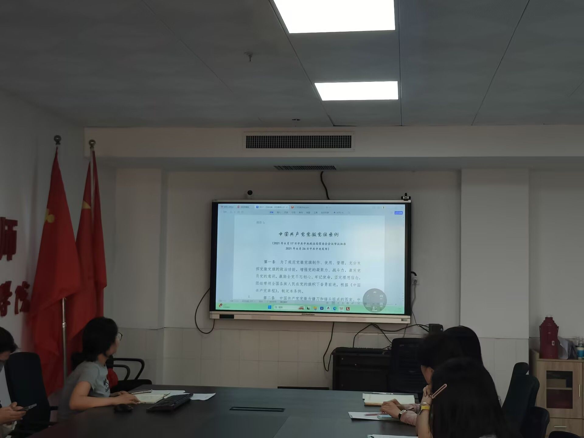 宣讲主要围绕党章的历史沿革、核心内容、时代意义三个维度展开,以党的重要历史节点为脉络,详细解读了党章在不同历史时期的发展与完善。结合党的二十大精神,深入剖析党章中党员的权利与义务、党的组织制度等关键内容,强调党章作为党的根本大法,是全体党员必须遵循的总规矩。在《中国共产党党徽党旗条例》学习环节,党支部书记带领全体党员逐条学习条例内容。从党徽党旗的性质、式样、制作、使用、管理等方面进行详细解读,通过具体案例分析,明确在不同场合规范使用党徽党旗的重要性,强调党徽党旗是中国共产党的象征和标志,维护党徽党旗的尊严就是维护党的尊严。学习过程中,党员们结合自身实际,分享在日常学习、生活中遇到的与党徽党旗相关的场景,共同探讨如何更好地规范使用,强化责任意识。