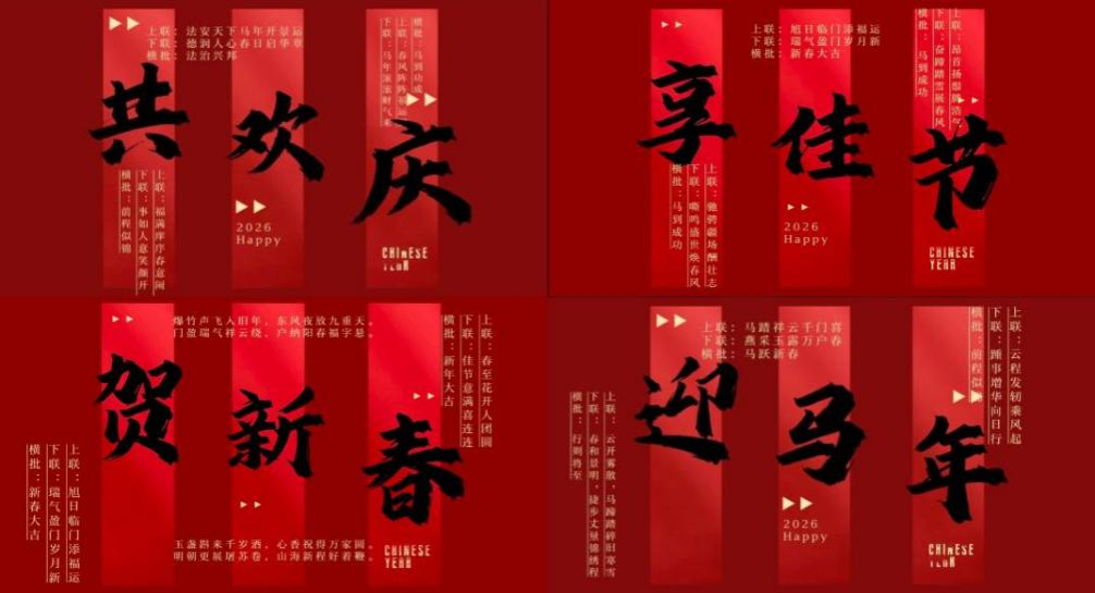 “文”——诗联贺“新”,执笔抒年味活动。2月3日至10日,诗联贺“新”活动率先开幕。同学们以“新年”为主题,以文抒怀,以墨传情,挥墨创作原创春联,用凝练的文字勾勒新春愿景,传递美好祝福。法学院心理委员联合会对所有投稿进行悉心筛选,将优质祝福汇编成2026新年专属祝福留言板,并于除夕之夜于官方QQ账号如期发布,为全院师生送上别具一格的新春祝福,也让同学们在创作与互动中感受中华楹联文化的独特魅力。