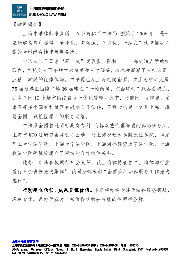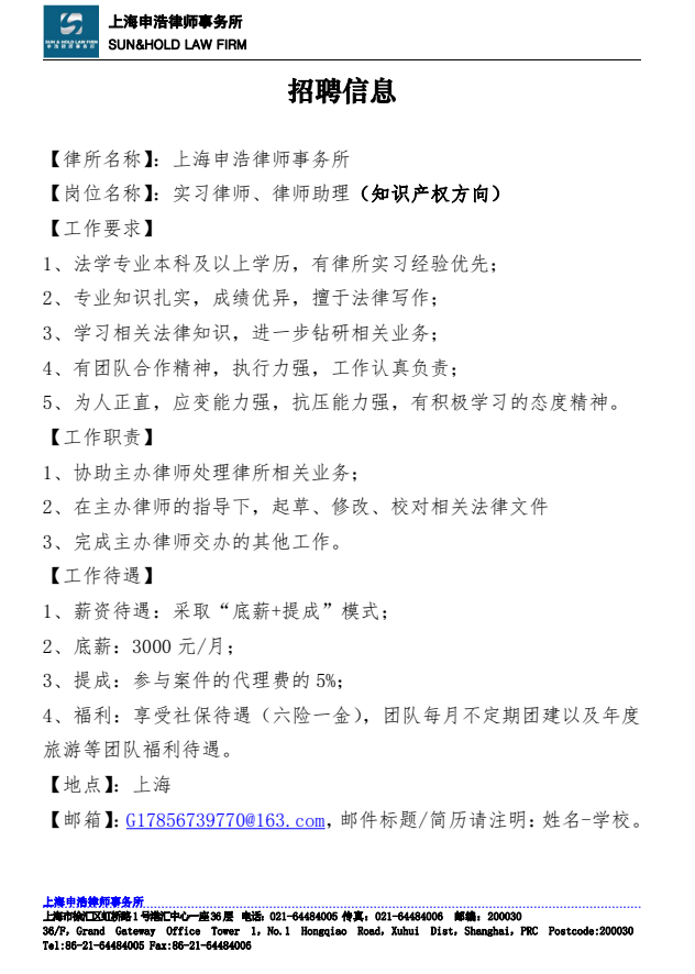 上海申浩律师事务所招聘公告