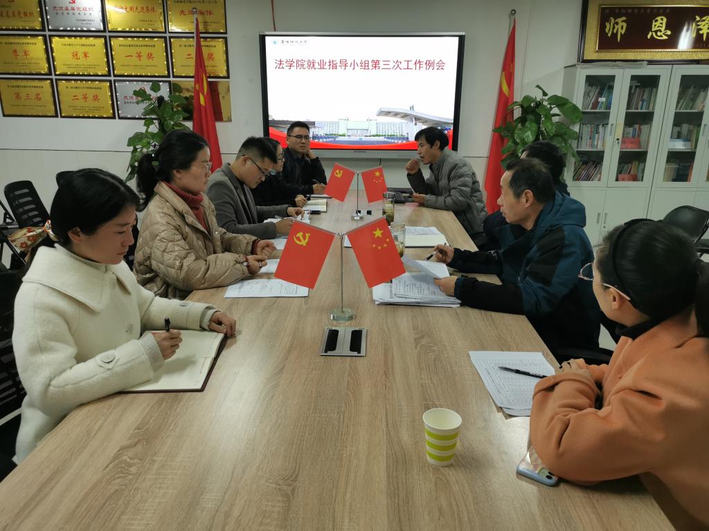 为更好贯彻落实党中央、国务院“稳就业”、“保增长”决策部署,深入学习领会习近平总书记关于高校毕业生就业创业的重要指示精神,贯彻落实好习近平总书记在党的十九届六中全会上的重要讲话精神和2022届全国普通高校毕业生就业创业工作网络视频会议精神。12月8日,法学院就业领导小组于812会议室召开了第三次工作例会,会议由组长钱守云主持,就业领导小组全体成员参加。