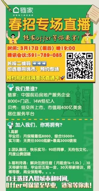 链家总部直播专场,大家扫描二维码预约报名,可以提前选择意向城市。