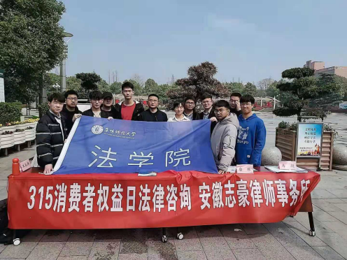 3月15日上午,法学院学子联合安徽志豪律师事务所在清河广场为广大市民群众提供“3·15”消费者权益日法律义务咨询服务。