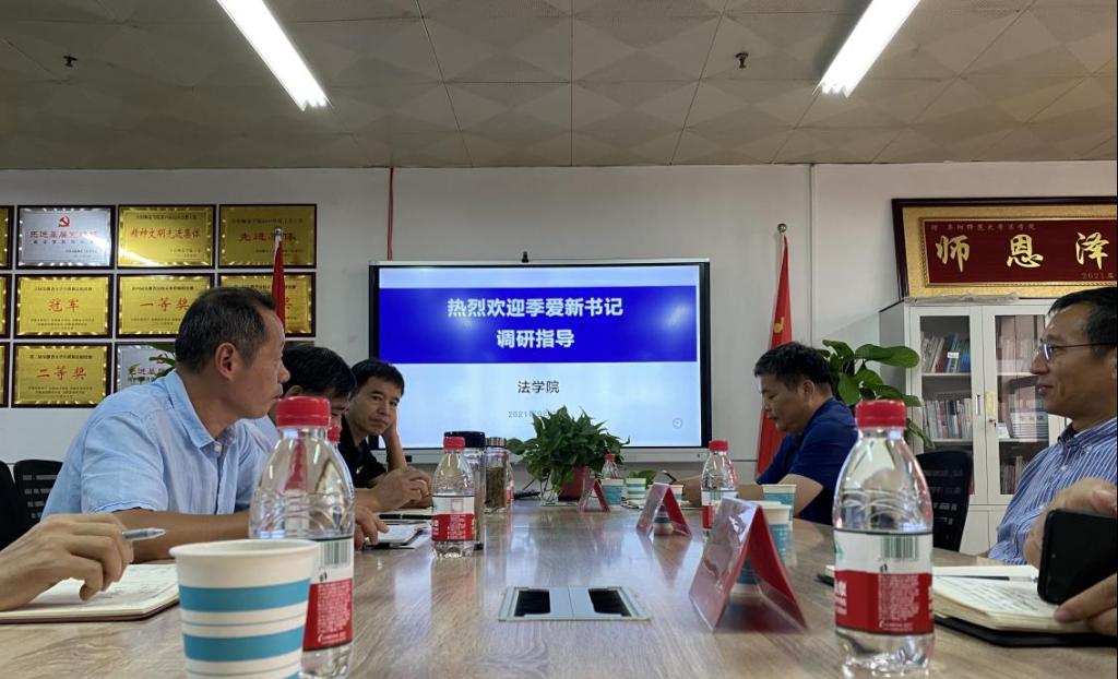 为进一步推进全面从严治党向基层延伸,提升整改工作成效和促进相关工作有序有效开展,校党委常委、纪委书记、监察专员季爱新,校纪委副书记孟献臣,校纪委办综合管理室主任刘红梅一行于2021年9月28日深入法学院开展调研督查工作。法学院领导班子成员、党委委员参加,党委秘书列席。