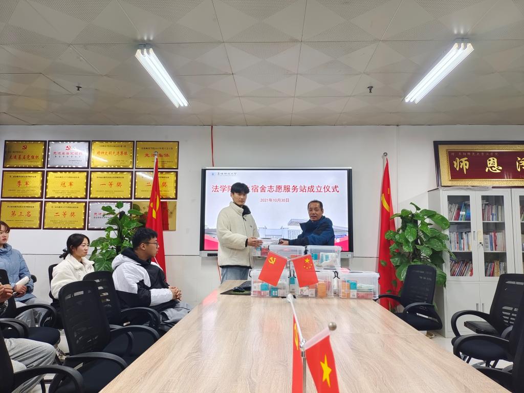 为进一步推进我院党史学习教育“我为师生办实事”之“进宿舍”实践活动的开展,充分发挥大学生“自我教育、自我服务、自我管理”作用,法学院于11月30日下午在812会议室举行学生宿舍志愿服务站成立暨宿舍救急药品箱发放仪式,法学院党委书记钱守云,党委副书记、院长余为青,全体辅导员以及部分学生代表参加。