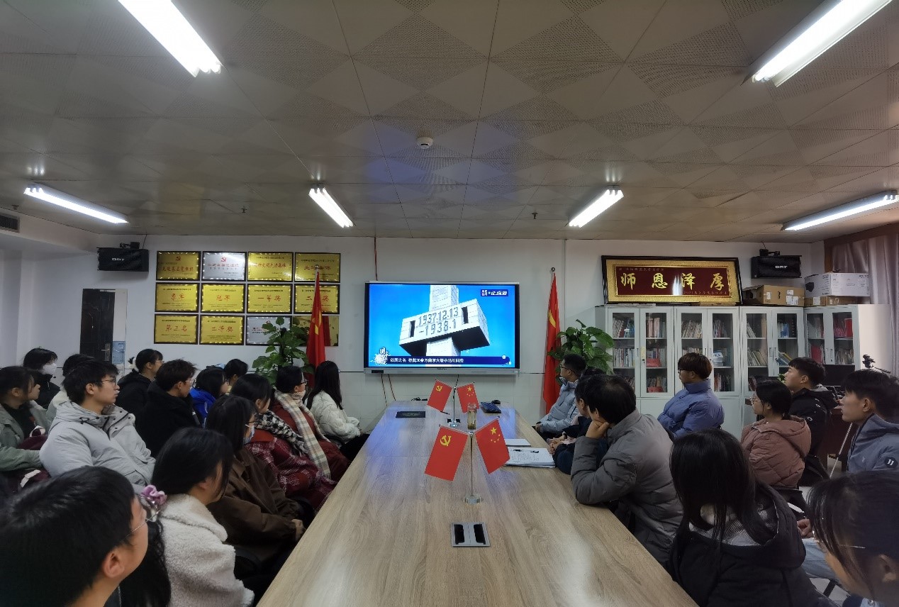 12月12日晚,法学院学生会在西湖校区模拟法庭开展国家公祭日主题活动。学院团学负责人李阿康向大家详细地介绍了国家公祭日的来历、南京大屠杀死难者国家公祭日的设立决议和设立意义。随后,全体成员均怀着悲痛的心情观看影片《南京!南京!》,整个观看现场肃穆庄严。大家还在电影放映结束后交换了各自的观影感受以及对国家公祭日的认识和看法。