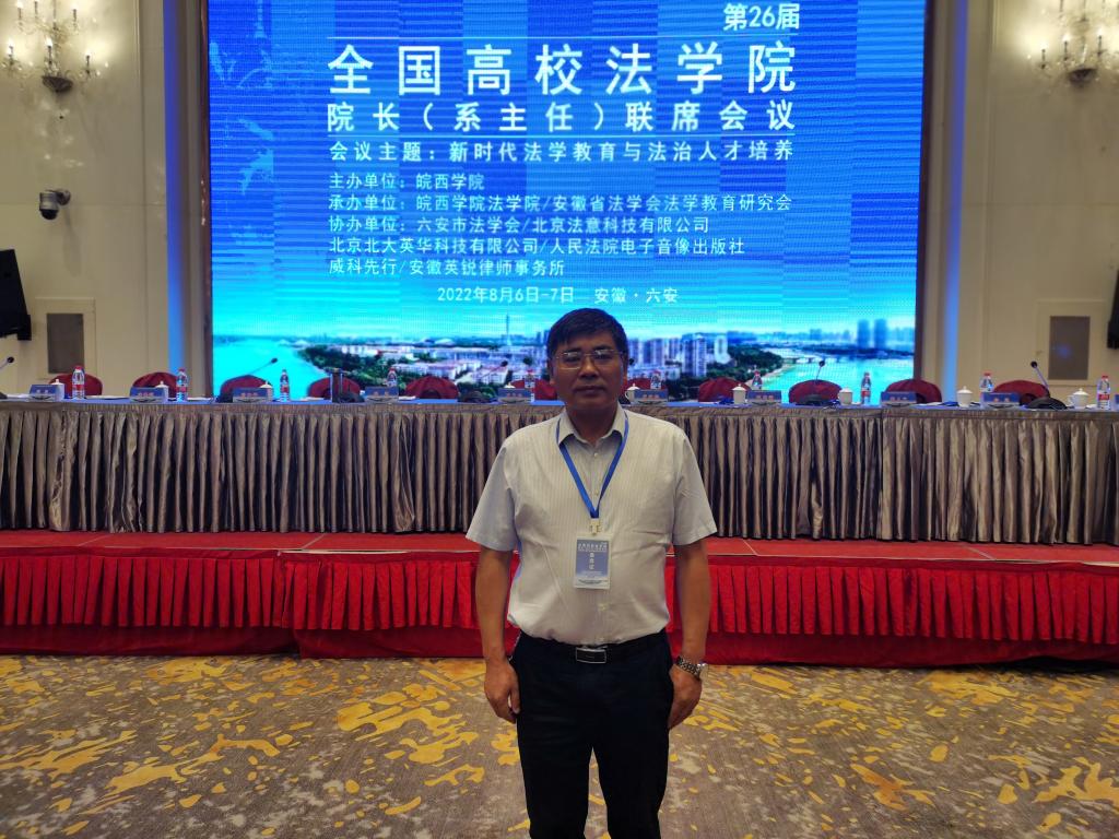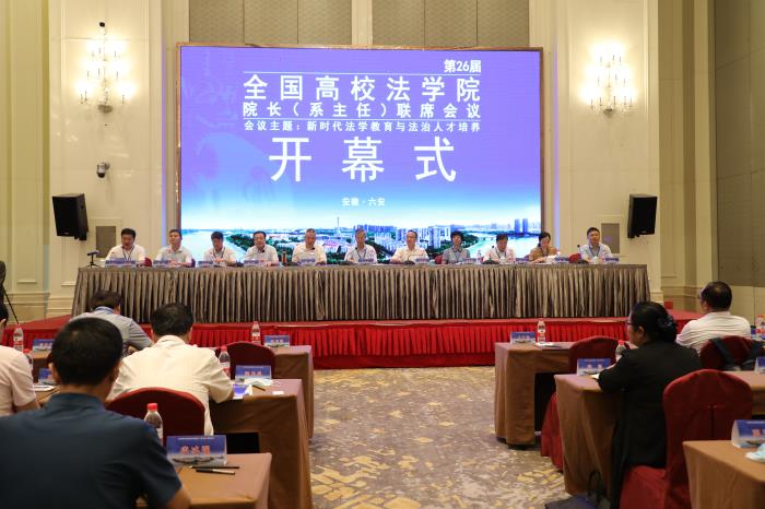 8月6日,第二十六届全国高校法学院院长(系主任)联席会议在六安召开,会议的主题是新时代法学教育与法治人才培养。本次会议由皖西学院主办,皖西学院法学院、安徽省法学会法学教育研究会承办。来自全国100多所高校法学院院长和系主任及法学法律工作者参加会议,另有300多位专家学者通过网络直播线上参会。我校法学院党委副书记、院长余为青教授应邀参会。