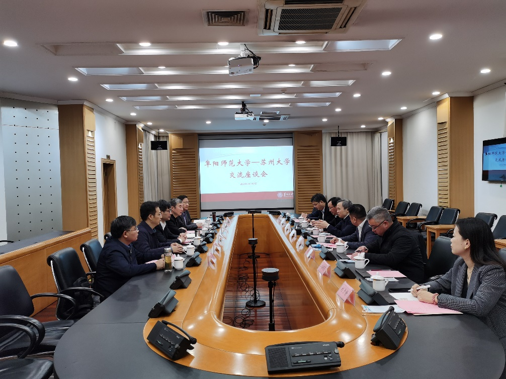 为了积极融入长三角一体化、推动学院更高质量发展,2022年11月17日,院长余为青教授作为阜阳师范大学代表团一员参加了我校与苏州大学交流座谈会。在苏州大学校党委常委、副校长沈明荣和我校党委常委、副校长张庆旭各自介绍双方学校情况之后,学校的职能部门和二级学院进行了点对点交流。