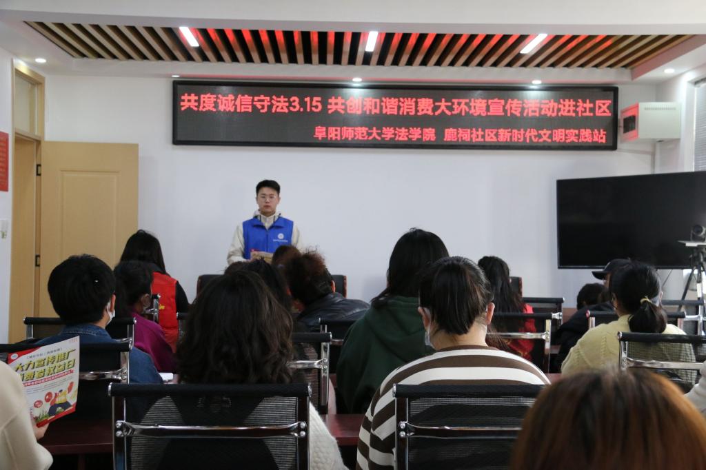 普法宣传进社区,维权意识入人心。为切实维护好社区居民的消费权益,增强社区居民的消费维权意识,3月15日,法学院团员志愿者们来到鼓楼街道鹿祠社区开展“共度诚信守法3·15 共创和谐消费大环境”普法宣传活动。