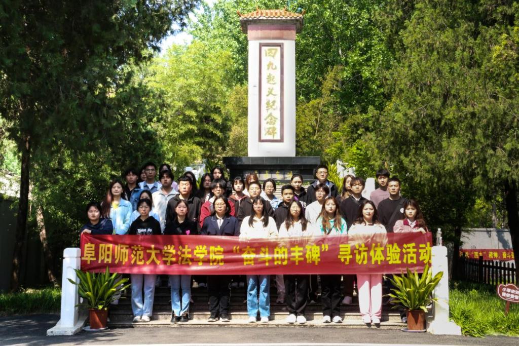 开展“奋斗的丰碑”寻访体验活动。为筑牢红色文化之根,引导学生坚定理想信念,传承红色基因,赓续红色血脉。4月26日,法学院组织学院“青马班”学员、入党积极分子近40人前往颍泉区行流镇王官集村四九起义纪念馆开展“奋斗的丰碑”寻访体验活动,法学院团委负责人李阿康、专职组织员胡五木参加活动。