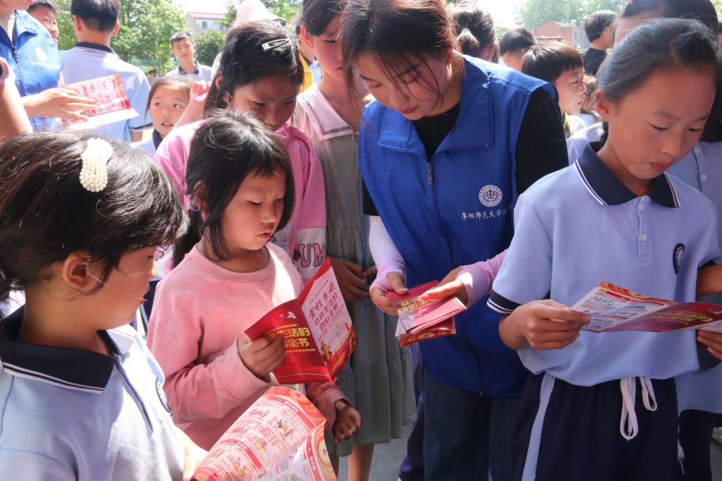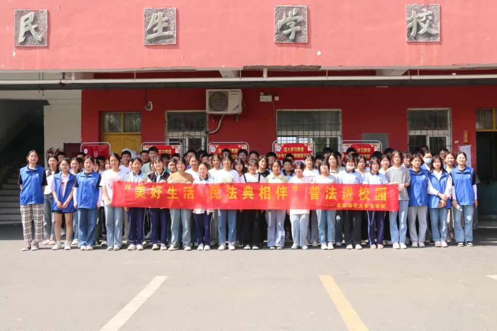 开展《民法典》宣传教育进校园活动。为深入学习宣传贯彻党的二十大精神,按照习近平总书记关于加强民法典学习宣传的重要指示精神,进一步增强青少年法治意识,5月19日,法学院组织普法志愿者赴利辛县育才民生学校开展《民法典》宣传教育活动,法学院团委负责人李阿康、党委秘书王楠参加活动。