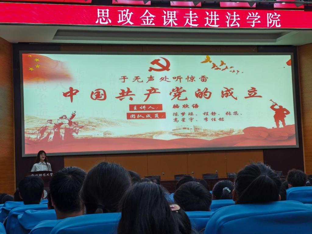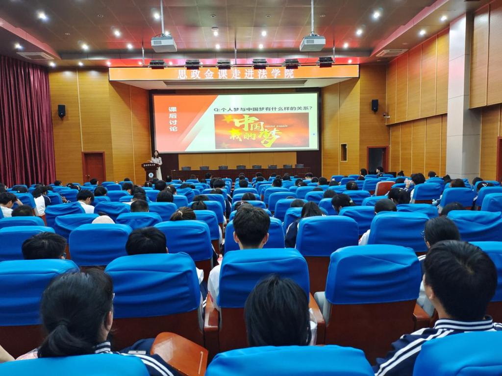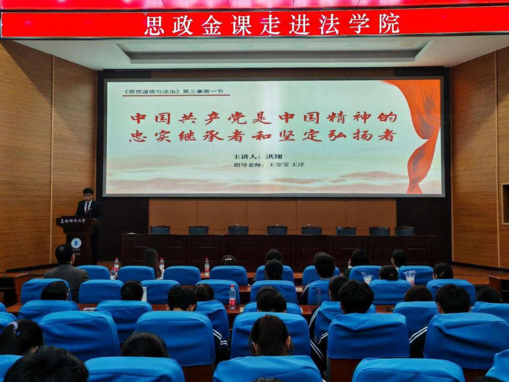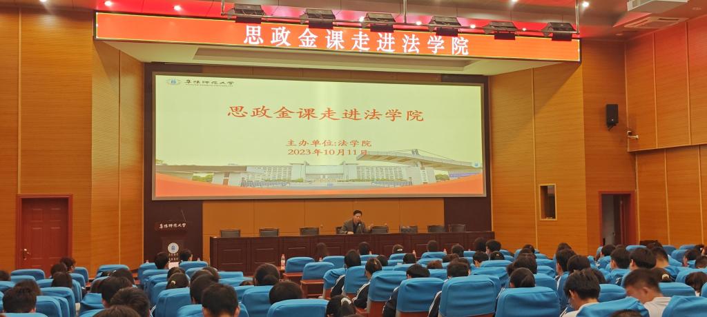 为深入学习贯彻习近平新时代中国特色社会主义思想,加强对大学生进行“四史”教育,积极引导广大青年大学生传承红色基因,厚植爱国情怀,坚定理想信念,2023年10月11日,法学院在西湖校区躬行楼F报告厅组织举办了“思政金课走进法学院”理论宣讲活动。活动邀请了在校第二届大学生讲思政课比赛中表现优秀的历史文化与旅游学院的杜玉茹同学、马克思主义学院的骆欣语同学、文学院的洪翔同学和刘浩然同学、法学院的王紫炘同学以及外国语学院的杨羽茜同学担任主讲人。法学院党委书记马健、团委负责人、2023级新生辅导员、辅导员助理以及法学院2023级全体新生参加活动,活动由马健主持。
