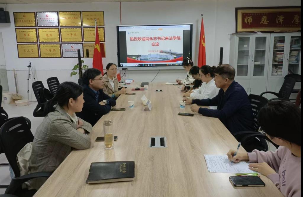 10月20日,第十四届全国人大代表、阜阳市九龙镇五坑村党总支书记、西湖景区街道白行社区党总支书记闫永志应邀来法学院交流。法学院院长余为青,管理学教研室冯伟、黄丽平及参加安徽省高校“模拟政府”大赛的选手参加了此次会议。