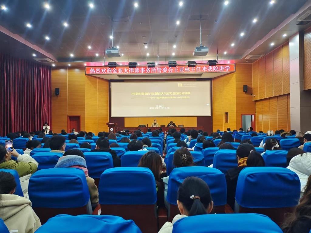 为了丰富同学们的见习活动,进一步提升见习效果,2023年11月24日,法学院邀请全国知名律师王亚林主任来我院举办讲座。法学院党委书记马建、院长余为青、副院长吴万群、李永成博士以及其他老师和2021级法学专业学生参加讲座,讲座由余为青主持。