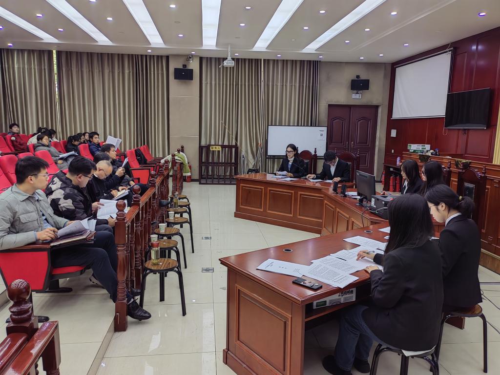 为促进理论教学与实践教学相结合,提高学生的法律实务能力,2023年12月1日,法学院邀请阜南县人民法院民二庭庭长魏田田法官、李占亚法官、安徽志豪律师事务所副主任马后清律师和安徽淮都律师事务所付世发律师,莅临模拟法庭比赛赛前演练比赛现场,实地指导参赛学生。法学院院长余为青、副院长吴万群、民商法教研室主任陈元庆和王少杰老师参与指导。