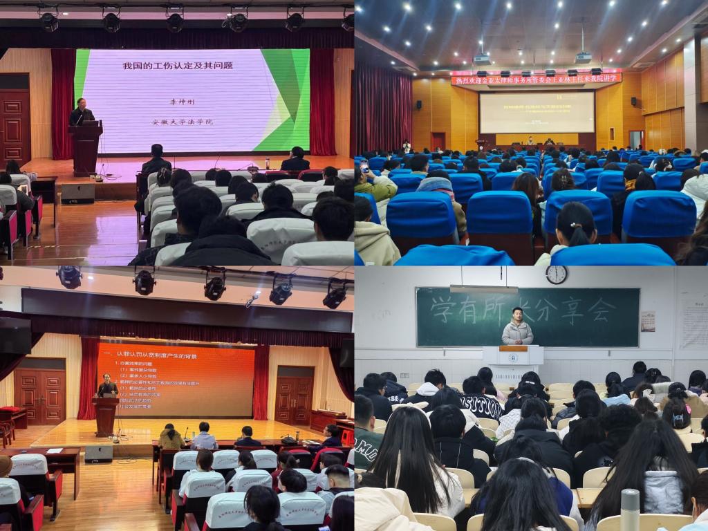 智育固本。积极搭建学科竞赛辅导、学术分享交流等平台,加强学风建设。积极备战安徽省模拟法庭大赛,主动邀请阜南县人民法院民二庭庭长魏田田法官、李占亚法官、安徽志豪律师事务所副主任马后清律师和安徽淮都律师事务所执行主任王广友律师、付世发律师,实地指导学生。搭建学术分享交流平台,邀请河南大学法学院名誉院长、特聘教授郝铁川、安徽大学法学院教授、博士生导师李坤刚、全国知名律师王亚林以及阜阳市人民检察院检察部第二检察部主任、高级检察官王亚钏等专家学者来我院讲学,注重学生学术素养和法律实践能力提升。此外,学院还充分发挥“一站式”学生社区党员、团员引领示范作用,组织开展了优秀学习记录评选、“学有所长”分享会等学风建设主题系列活动,助力学生学业发展。