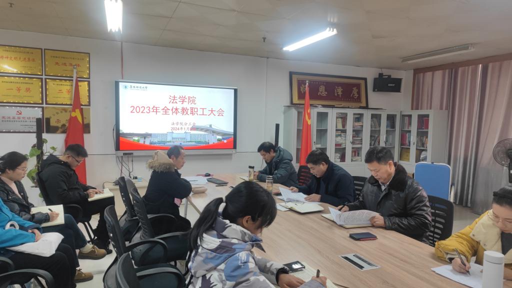 2024年1月3日,法学院2023年全体教职工暨工会会员大会在西湖校区景行楼812会议室召开,学院全体教职工齐聚一堂,畅叙旧岁奋斗路,共瞻新年新征程。大会由法学院党委副书记李阳主持。