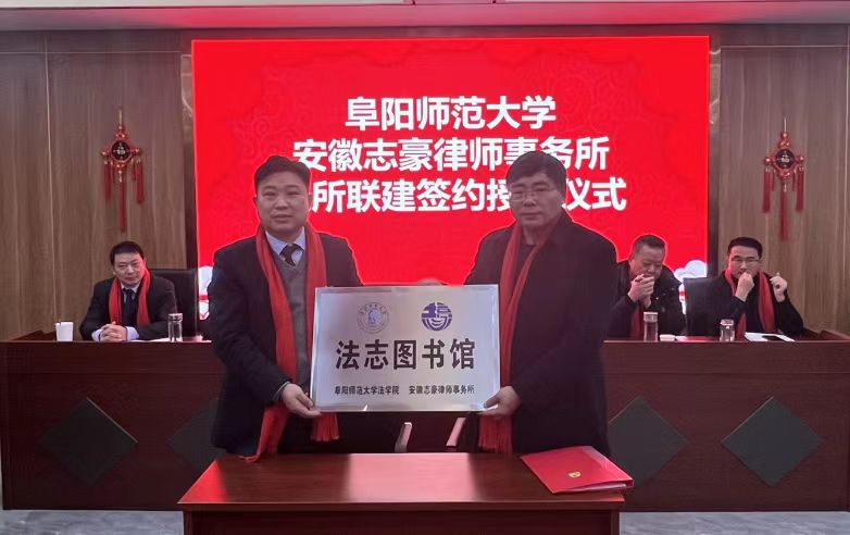 1月27日上午,阜阳师范大学法学院赴安徽志豪律师事务所开展深化院所合作交流活动。法学院院长余为青教授、民商法教研室主任陈元庆博士、行政秘书王少杰老师,安徽志豪律师事务所主任李子宽等领导及该所全体工作人员共同参加交流活动。