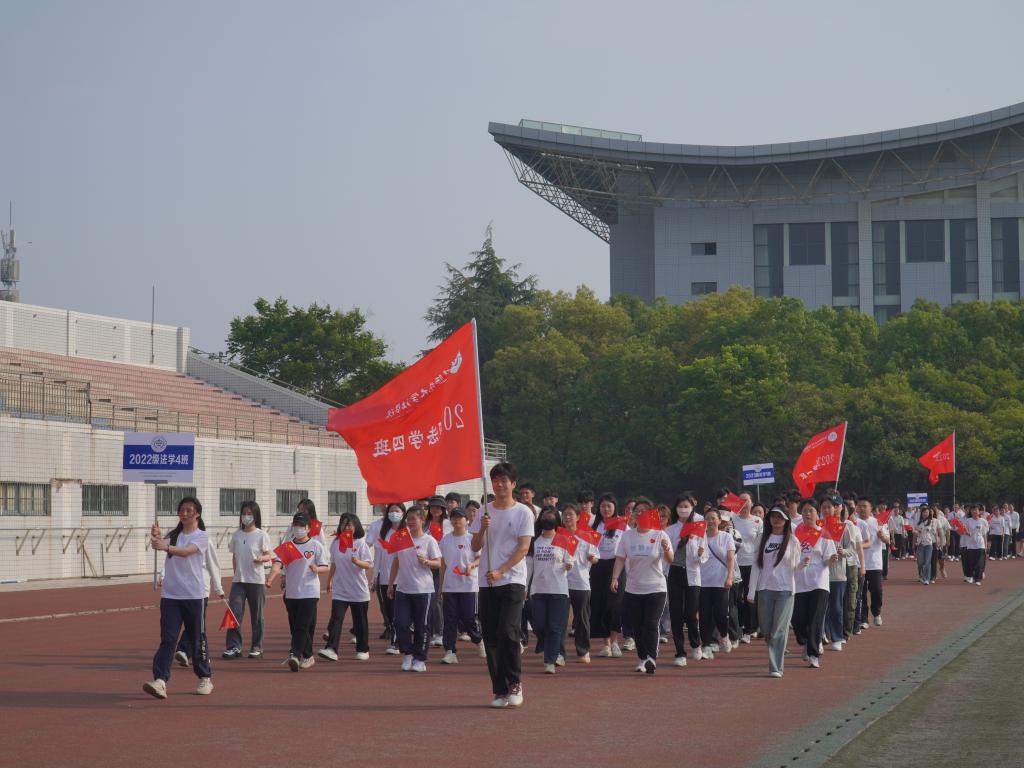 上午8时,伴随着激昂的运动员进行曲,运动会开幕式正式拉开,在国旗护卫队庄严地引领下,各班级方阵踏着整齐的步伐,喊着铿锵有力的口号有序入场,充分展示出法学院学子朝气蓬勃的青春力量和逐梦前行的校园风采,以青春的名义唱响法学院学子的责任与担当。