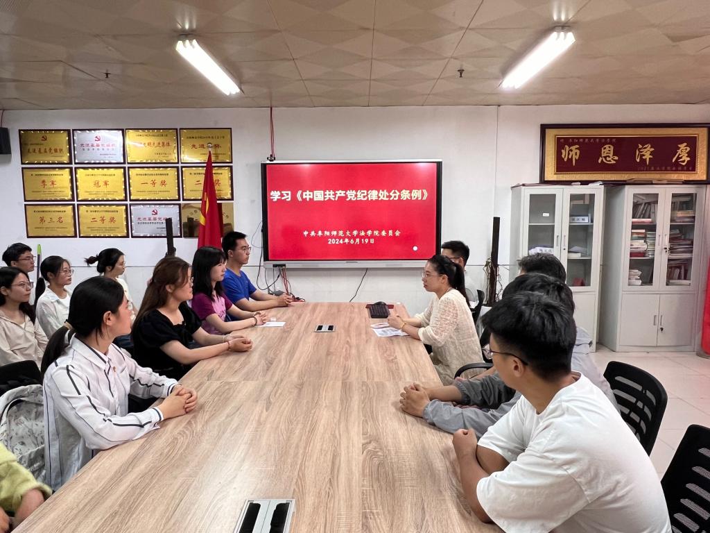 党旗飘在一线守初心。为深入学习贯彻习近平新时代中国特色社会主义思想,全面贯彻党的二十大精神,深入开展党纪学习教育,强化党员身份认同和党组织凝聚力,6月19日,法学院党委在景行楼812会议室举行新党员入党宣誓仪式。学院党委副书记李阳、学生党支部书记、学生党员代表及2024年上半年新发展学生党员参加会议。
