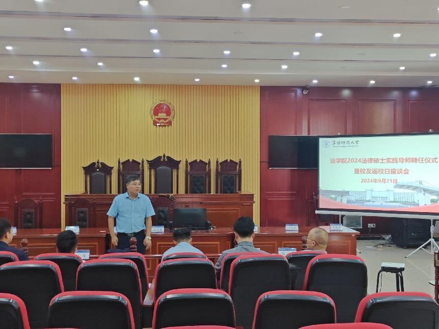 2024年9月21日,在这个金秋送爽、丹桂飘香的美好时节,阜阳师范大学法学院迎来了一场学术与实践交相辉映、师生情谊与校友荣光共融的盛会——2024年法律硕士实践导师聘任仪式暨校友返校日座谈会。此次活动不仅标志着法学院在深化教学改革、加强校企合作方面迈出了坚实的一步,更搭建了一个促进学术交流、共谋学院未来发展的高端平台。