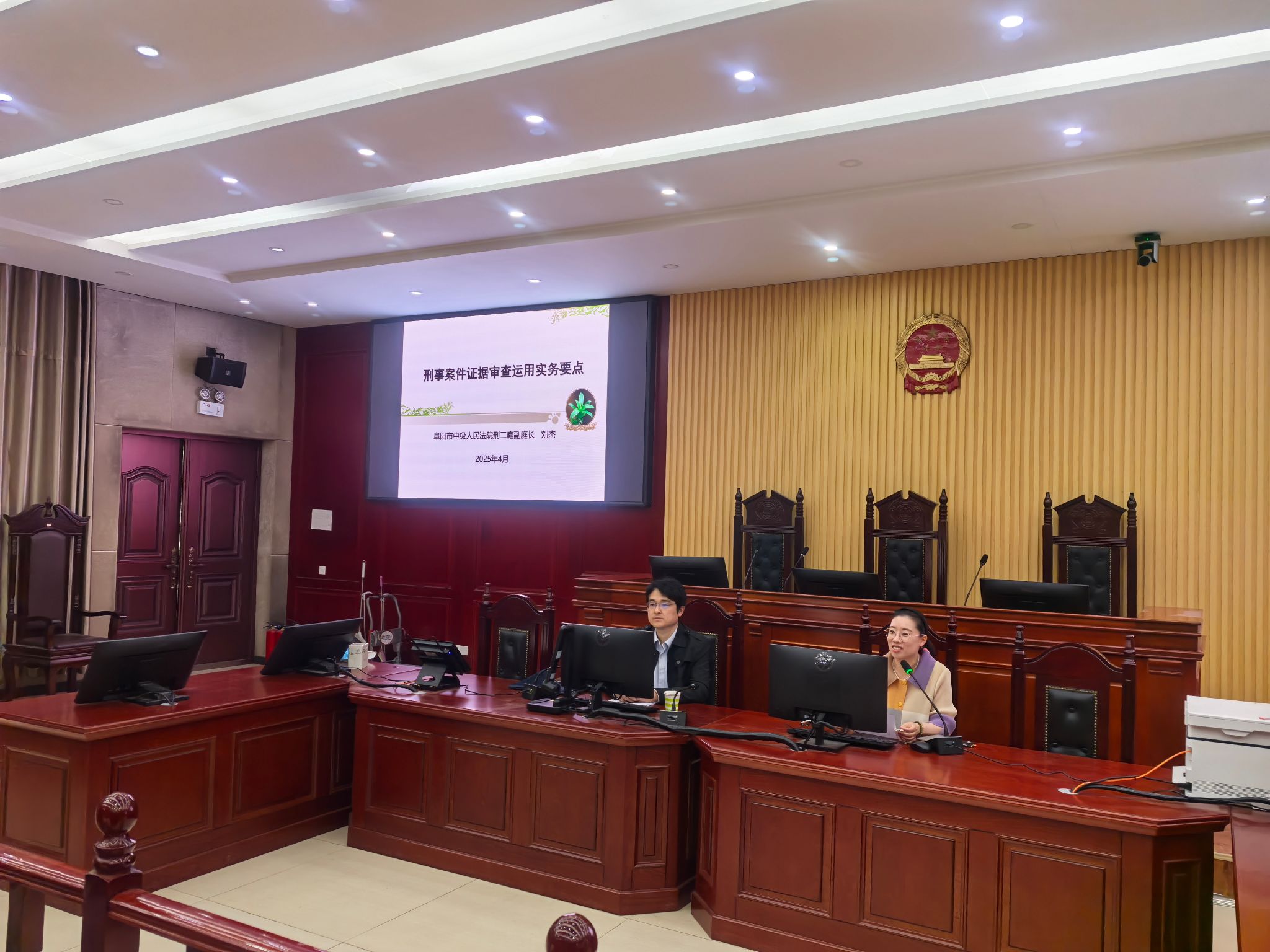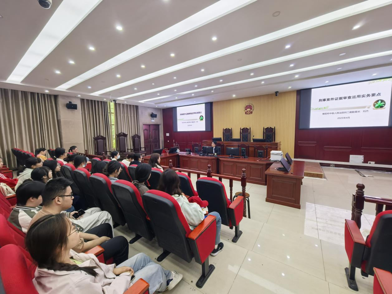 为深化法学理论与司法实践的融合,提升学生对刑事证据实务的认知水平,法学院于2025年4月23日上午特邀阜阳市中级人民法院副庭长刘杰法官,在模拟法庭作题为《刑事案件证据审查运用实务要点》的专题讲座。本次讲座由法学院党委副书记李阳主持,法学院民商法教研室主任陈元庆博士和部分师生代表到场聆听。